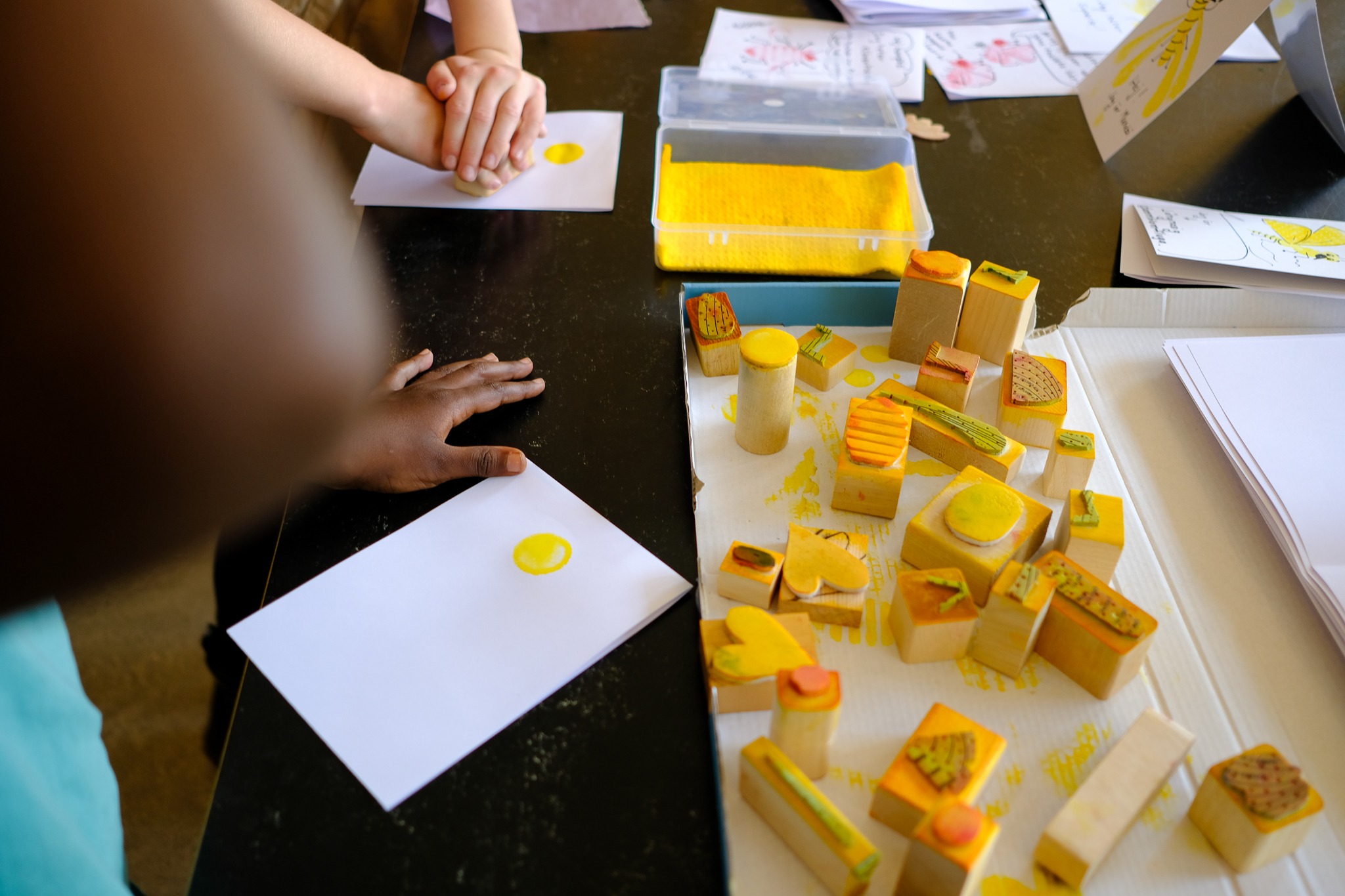I Buzzing Heroes får barnen lära sig om pollinatörernas viktiga roll i naturen genom interaktiva berättelser och kreativt skapande. Under workshopen får de använda stämpling som teknik för att gestalta sina egna pollinatörer och skapa konstverk som reflekterar dessa livsviktiga hjältar.